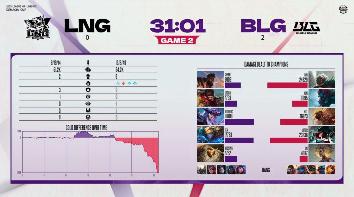 面临之前爆冷打败JDG的LNG,BLG所以2-0的比分松驰碾压取得到手。